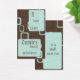 Retro design in aqua on a chocolate background. Plenty of customisation options! Brown text is #594031.