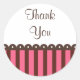 Candy coloured stripes and chocolate scallops give this thank you sticker retro style. Use these stickers for packaging, as envelope seals, etc....Use these pink and brown stickers for a bakery, boutique, shop, business, envelopes, etc...Customise these stickers to suit your needs by changing the company name. The designs are from original art.