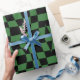 Retro Christmas 70s green wavy checkered Pattern Wrapping Paper