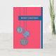 Three orange and blue retro style Christmas ornaments, slightly offset against a bright red background, a sweet, different look for Christmas celebrations. Check out
