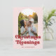 A holiday card with a religious message and your photo in an arch shape. "Christmas Blessing" is in bold retro red type, on a blush pink background. The reverse features red horizontal stripes on blush pink background.