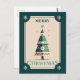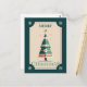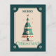Vintage Christmas card featuring a geometric tree with colourful decorations and snowflake accents and Merry Christmas message. Perfect for holiday greetings or festive decoration.