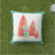 Retro Christmas Deer with Aqua Frame Outdoor Cushion
