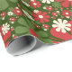 Retro Christmas Floral Fantasy Pattern Red Green Wrapping Paper