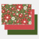 Retro Christmas Floral Fantasy Pattern Red Green Wrapping Paper Sheet