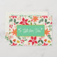 Colourful Chrtismas gift certificate with floral pattern background and turquoise plaque with retro script font and stars