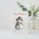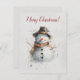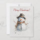 Merry Christmas card in retro style with watercolor painting of a snowman in a hat