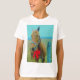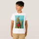 100% cotton so perfect for summer, It is a nicely designed t-shirt, the fabric is soft and the seams finished well, the body of the t shirt has no side seams. I bought a medium size for my two grandsons, aged 9 and 8 it will be slightly big on them but I would rather that than too small