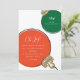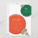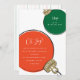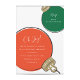 Modern illustration of a retro style red and green christmas ornament with the words "Oh Joy" in white script and contemporary typography. These invites are perfect for Christmas ornament exchange parties.