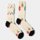 Brighten the season with these playful holiday socks featuring a retro mix of colorful ornaments—stars, teardrops, and classic baubles—dancing across a cozy cream background. Finished with bold black toes and heels for a crisp, modern contrast, they’re the perfect festive touch for gifting, lounging, or adding a little cheer to any winter outfit.