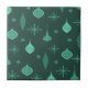 A mid century modern inspired winter holiday season design with Christmas tree ornaments and sputnik starbursts.