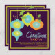 An alternative to traditional red and green, this trio of ornaments in turquoise, orange and lime decorate this holiday party invitation in retro style! Use our matching sticker or address label to decorate your envelope for a great coordinated look!