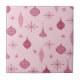 A mid century modern inspired winter holiday season design with Christmas tree ornaments and sputnik starbursts.