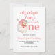 Oh what fun, it is to be One! Retro Christmas pink Santa first birthday party invitation with retro style santa and stripe back.