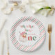 Retro Christmas Santa first birthday party with retro style pink santa and pink and red stripes. Oh what fun it is to be one!