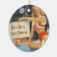 Created from a vintage 1950s illustration of a pretty pinup girl in a santa outfit holding a sign. Customise the back with your own sentiment. Retro cool!