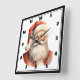 Clock with a cute retro style illustration. Santa Claus with a bushy white beard wearing his traditional red suit.