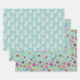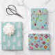 Retro Christmas Set 1 Teal Christmas wrapping paper sheets have three different hand painted patterns. You have retro Christmas trees, retro Christmas ornaments, and retro Christmas gifts all with matching teal backgrounds. You can make the patterns on the wrapping paper sheet larger or smaller. These designs are a cute way to brighten up your holiday gifts under your Christmas tree this year.