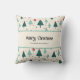 Decorate for the holidays with this customisable Merry Christmas throw pillow. The design has a retro Christmas tree pattern with an off white/cream background and can be personalised with your family name. Makes a great party or housewarming gift.