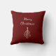 Retro Christmas Tree Festive Pillow, with white customisable script lettering on a red background. This item makes a lovely holiday gift or addition to your seasonal home decor.