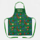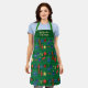 Traditional holiday apron where the deep red, rich blue, and shimmering gold and green retro Christmas ornaments create a mesmerising pattern.