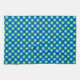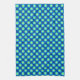 Kitchen towel in Retro dots with a contrasting border, based on a classic, Mid-Century Modern upholstery pattern - pale green dots bordered turquoise / peacock blue on a dark cobalt blue background