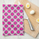 Retro circled dots, fuchsia, grey and pink tea towel
