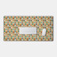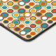 This funky 1960s retro style patterned desk mat features circles of brown, teal blue, white, and two shades of orange. This is sure to be an eye catcher in your office!