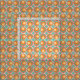This fabric has a mid-century modern design of concentric circles in 1970s colours with stars between each group.