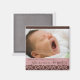 "Retro Circles" rosy brown/brown photo birth announcement magnet. Personalise this stylish retro photo magnet template with your baby girl's photo and details for a unique keepsake.