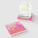The coasters are gorgeous, a quality feel and heavy weight. They look like a precious archeological find. A rustic stone juxtaposed with a modern floral black and white print. I like the way the print goes slightly imperfect on the cut stone edges giving them a kind-of natural beauty.