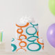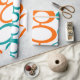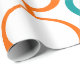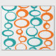 This retro wrapping paper is covered with mid-century modern circles of orange and turquoise. Perfect for any occasion.