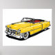 Bold pop-art / graphic style illustration of the side view of a retro vintage classic convertible car — bright yellow body, red interior, chrome accents, dual round headlights, whitewall tires, open top and powerful 1950s luxury energy on high-contrast background. Clean lines, vibrant yellow and nostalgic vibe celebrate timeless mid-century classic automotive design and American elegance. Perfect classic car enthusiast wall art, retro garage decor, man cave poster, vintage vehicle lover statement piece or automotive nostalgia art for bedrooms, garages, offices, game rooms or retro spaces. High-quality print with razor-sharp detail and striking colour pop.