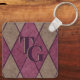 Add personalised style to your accessories with a custom-made keychain. Retro Classic Purple Diamond Argyle Pattern Monogram Initial Keychain. Personalise with your own initials. Great gift idea.