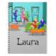 This customisable Retro Classic Television Spiral Notebook takes you back to a simpler time. The 1960's style, minimalist, cartoon drawing will have you looking for the opening credits. The design shows a mid century modern, sunken, living room with teal and turquoise walls and a red, cone shaped fireplace, complete with a roaring fire. All eyes are on the lanky, man of the house as he makes his grand entrance. The handsome Mister is wearing a blue suit and orange tie. His lovely Mrs. and energetic, young son are rushing to greet him. The lady of the house is wearing a hot pink, sheath dress, which she fills out in all the right places. The flip in her dark hair is sheer perfection. Junior is wearing a red shirt and blue jeans for his dash to see if his father has brought him anything. Whoa! Don't knock over the potted plant, Junior! On the lower level, we can see a green couch and an orange coffee table. Wait! We appear to have guests! Seated on the couch are a dark haired man in a blue suit and red tie, alongside a shapely blonde woman in a red dress with a red bow in her hair. Hey! It's Dad's coworkers. How did they get there first? It's one of the eternal mysteries of television. It looks like we're all set for a great evening in sitcom suburbia. But, first, we have to see if Dad is going to trip over the orange ottoman or sidestep it with some fancy footwork. Oh, the zaniness! The only thing missing from this scene is the theme song. And, if you listen closely, you can probably hear it in your mind. The bottom of the design has plenty of room for customising.