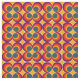 This fabric has a mid-century modern design of concentric circles in 1970s colours with stars between each group.