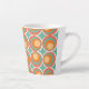 This mug has a mid-century modern design of concentric circles in 1970s colours with stars between each group.