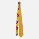 This necktie has a mid-century modern design of concentric circles in 1970s colours with stars between each group.