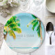 Retro Coastal Beach Palm Trees Tropical Wedding Paper Plate