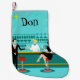 Every hour is happy hour with this Customisable Retro Cocktail Lounge Christmas Stocking. The mid century modern design features a vibrant, 1960's style, minimalist, cartoon drawing of a classy, cocktail bar. Against the backdrop of an aqua wall, we can see rows of drink glasses. At least we can see the teal silhouettes of drink glasses. Judging from the shapes of the stemware, this bar is well equipped to wet your whistle, whatever your drink preference. A most competent and personable bartender is manning the teal bar with yellow accents. The young barkeep is wearing a pristine, white shirt with black bow tie. His fresh-faced good looks, blonde hair and black hipster glasses give us every reason to believe that he either spends his days as a struggling actor or a superhero. In one hand, the handsome mixologist is handing a martini to a customer on the opposite side of the bar. The waiting customer is a broad-shouldered gentleman in a black suit and red tie. He's the sort of fellow who is described as tall, dark, and handsome even when it's still hours until closing time. There seems to be a red and chrome bar stool with Mr. Debonair's name on it. Yet, not to be presumptuous, he asks the question, "Pardon me. Is this seat taken?" He is asking the raven haired gal on the neighbouring bar stool. She's a real "girl next door" type, if you happen to live next door to a flawless beauty with a figure that won't quit. She is wearing a black dress and holding a martini in one hand. She's hoping that she and the approaching gentleman have more in common that their drink preference and choice of wardrobe colour. It looks like this evening just got interesting. Cheers to you! Personalise for a one of a kind holiday gift.