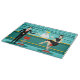 Every hour is happy hour with this Retro Cocktail Lounge Cutting Board. The mid century modern design features a vibrant, 1960's style, minimalist, cartoon drawing of a classy, cocktail bar. Against the backdrop of an aqua wall, we can see rows of drink glasses. At least we can see the teal silhouettes of drink glasses. Judging from the shapes of the stemware, this bar is well equipped to wet your whistle, whatever your drink preference. A most competent and personable bartender is manning the teal bar with yellow accents. The young barkeep is wearing a pristine, white shirt with black bow tie. His fresh-faced good looks, blonde hair and black hipster glasses give us every reason to believe that he either spends his days as a struggling actor or a superhero. In one hand, the handsome mixologist is handing a martini to a customer on the opposite side of the bar. The waiting customer is a broad-shouldered gentleman in a black suit and red tie. He's the sort of fellow who is described as tall, dark, and handsome even when it's still hours until closing time. There seems to be a red and chrome bar stool with Mr. Debonair's name on it. Yet, not to be presumptuous, he asks the question, "Pardon me. Is this seat taken?" He is asking the raven haired gal on the neighbouring bar stool. She's a real "girl next door" type, if you happen to live next door to a flawless beauty with a figure that won't quit. She is wearing a black dress and holding a martini in one hand. She's hoping that she and the approaching gentleman have more in common that their drink preference and choice of wardrobe colour. It looks like this evening just got interesting. Cheers to you!