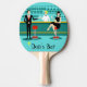 Every hour is happy hour with this Customisable Retro Cocktail Lounge Ping Pong Paddle. The mid century modern design features a vibrant, 1960's style, minimalist, cartoon drawing of a classy, cocktail bar. Against the backdrop of an aqua wall, we can see rows of drink glasses. At least we can see the teal silhouettes of drink glasses. Judging from the shapes of the stemware, this bar is well equipped to wet your whistle, whatever your drink preference. A most competent and personable bartender is manning the teal bar with yellow accents. The young barkeep is wearing a pristine, white shirt with black bow tie. His fresh-faced good looks, blonde hair and black hipster glasses give us every reason to believe that he either spends his days as a struggling actor or a superhero. In one hand, the handsome mixologist is handing a martini to a customer on the opposite side of the bar. The waiting customer is a broad-shouldered gentleman in a black suit and red tie. He's the sort of fellow who is described as tall, dark, and handsome even when it's still hours until closing time. There seems to be a red and chrome bar stool with Mr. Debonair's name on it. Yet, not to be presumptuous, he asks the question, "Pardon me. Is this seat taken?" He is asking the raven haired gal on the neighbouring bar stool. She's a real "girl next door" type, if you happen to live next door to a flawless beauty with a figure that won't quit. She is wearing a black dress and holding a martini in one hand. She's hoping that she and the approaching gentleman have more in common that their drink preference and choice of wardrobe colour. It looks like this evening just got interesting. Cheers to you! Personalise for a one of a time gift.