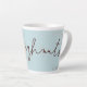 Delight yourself in a frothy pleasure each morning as you reach for your retro inspired coffee and doughnuts latte mug. This original design is set on a vintage blue background, hand lettered and hand painted with an old-fashioned doughnut using watercolors, then dusted with cinnamon sugar. What's a better match than coffee and doughnuts?