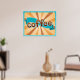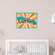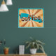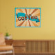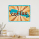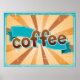 Retro Coffee Typography Teal Brown Sunburst Poster