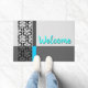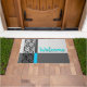 Mid Century Modern shapes on a colour blocked background in blues and greys