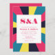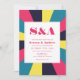 Retro art colourful abstract groovy personalised wedding invitation. Pink blue yellow colour palette. This card is easily editable. If you need help with the customisation of this product or you need more matching products for this collection kindly message me via Zazzle.