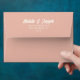 A retro modern hand written bright colourful wedding envelope. Which features bold vintage bride and groom's names in white creamy colour. And personalised return address . On peach colour background. Which suits the whole wedding suite.