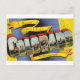 A bright, fun colourful retro postcard from Colorado. It also incorporates some well-known Colorado slogans into the design.
