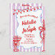 This wedding invitation is perfect for your wedding if you are looking for an elegant unique and easy editable double sided invitation .An elegant unique simple minimalist blue and purple and magenta red wedding template invitation. As you see it features plain white clean classic background. And magenta red bright hand written bride's and groom's first names and script info. And hand drawn painted sky blue frame and purple stripes with red champagne glass and candle and lights . And whole wedding details as reception, hotel, rsvp and wedding website. Affordable and it is also digital electronic e-invitation if you want to send it by text or email. All the info are customisable by clicking on the personalise button. So Grab it and make it yours so you make you invites engaged and excited .
