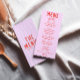 A colourful retro funky modern peach orange wedding dinner menu. Which features chic template design of boho vintage peach background and red bold typography. And Hand Drawn piece of cake and hand written whole script. Perfect and matching with the whole suite.